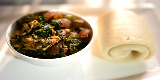 African Delicious Vegetable Soup with White Fufu